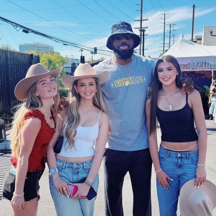 Các cầu thủ của Lakers là James, Doncic, Vincent, Knect, Reeves, Smart và những người khác đều xuất hiện. James chụp ảnh cùng ba mỹ nhân trẻ và lè lưỡi tinh nghịch. độc quyền