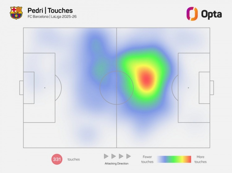 Thống kê cho thấy Pedri là người chơi duy nhất trong số năm giải đấu lớn ở châu Âu trong mùa này để đạt được năm thống kê sau cùng lúc: 5+ cú sút (5 lần), 5+ cơ hội (6 lần), hơn 200 lần vượt qua (251 lần) Nó có thể được gọi là động cơ tiền vệ của Barcelona.